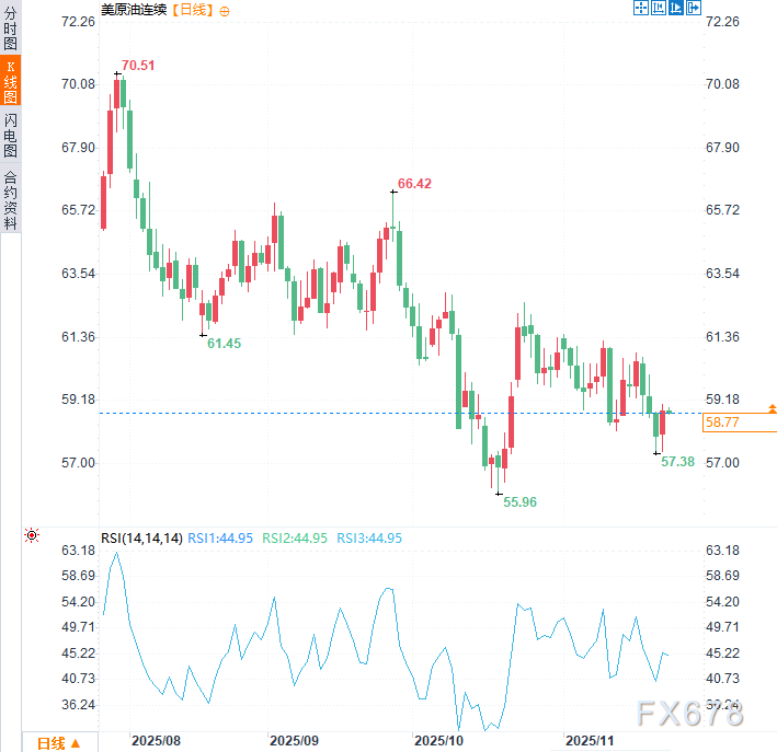 北京时间10:44,美原油连续现报58.77美元/桶。